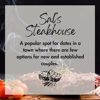 He was quiet as he pulled into the small parking lot next to Sal’s. Sal’s Steakhouse was in a small standalone brick building. The neon side above the entrance flickered slightly. Through the front windows, I saw other patrons enjoying their meal or sipping on drinks. We walked inside and were seated in a corner.